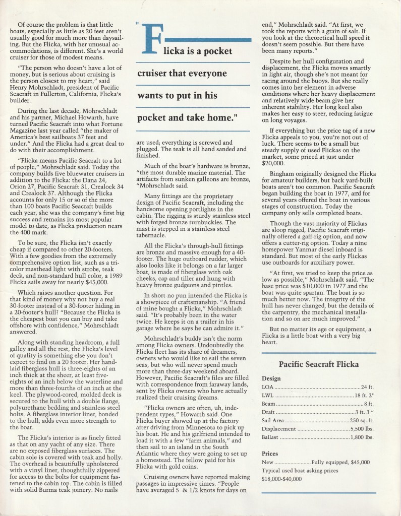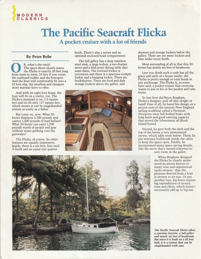 I received a folder of various Flicka 20 hard copy brochures and articles when I purchased Sampaguita, Hull #317 and this was included. In my reduction of paper storage, I have decided to preserve and share them digitally.