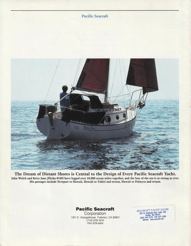 This Pacific Seacraft Corporation of California promotional material was reprinted from Sea magazine, published September 1989, and written by Peter Bohr.