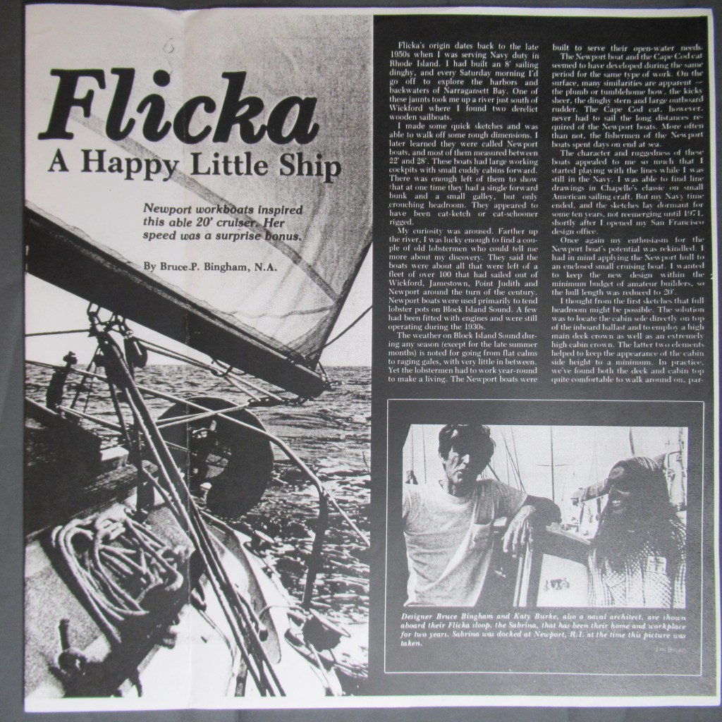 I received a folder of various Flicka 20 hard copy brochures and articles when I purchased Sampaguita, Hull #317 and this was included. In my reduction of paper storage, I have decided to preserve and share them digitally.