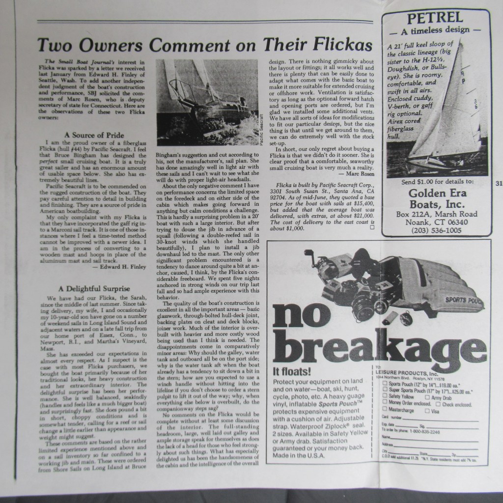 Here is some 80’s promotional literature from Pacific Seacraft for the Flicka 20.